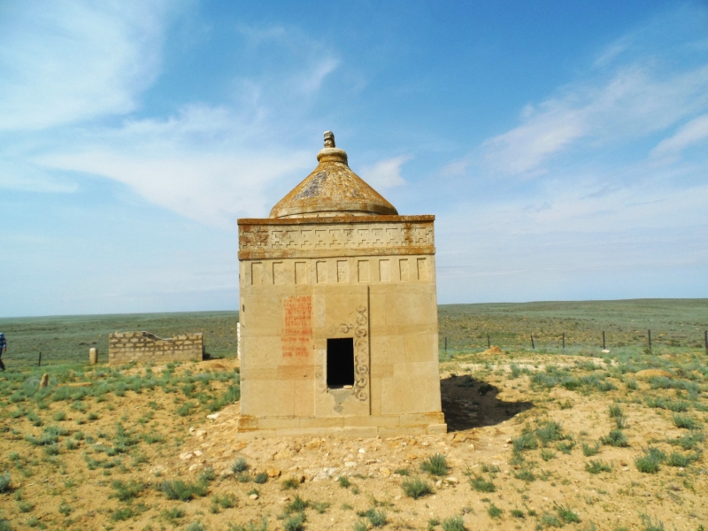 Ескерткіштің сипаттамасы: Зерттеу жұмыстарының нәтижесінде қорымнан 1 күмбезтам есепке алынған. Күмбезтам қорымның орталық бөлігінде орналасқан. Жоспарда төртбұрышты етіп, қабырғалары өңделген плиталармен қаланған, екі сатылы цокольды белдікке орнатылған. Оңтүстік-шығыс қабырғасының жіпсетасы мен кереге тасы аралығына тіктөртбұрышты ойықтар қалдырылып, порталына геометриялық өрнектер кескінделген. Күмбезтамның ішкі қабырғалары сырлы бояулармен салынған әр түрлі суреттермен безендірілген, сыртқы қабырғаларына жылқы, аяқ-киім, қару-жарақ суреттері, Адай руының таңбасы кескінделген. Тіктөртбұрышты кіріс ойығы оңтүстік-батысқа бағытталған. Қорым 2005 жылы жергілікті дәрежеде мемлекет қамқорлығына алынды. Күмбезтамның өлшемдері: 452х303х325см. Материалы: ақ-бор тас.